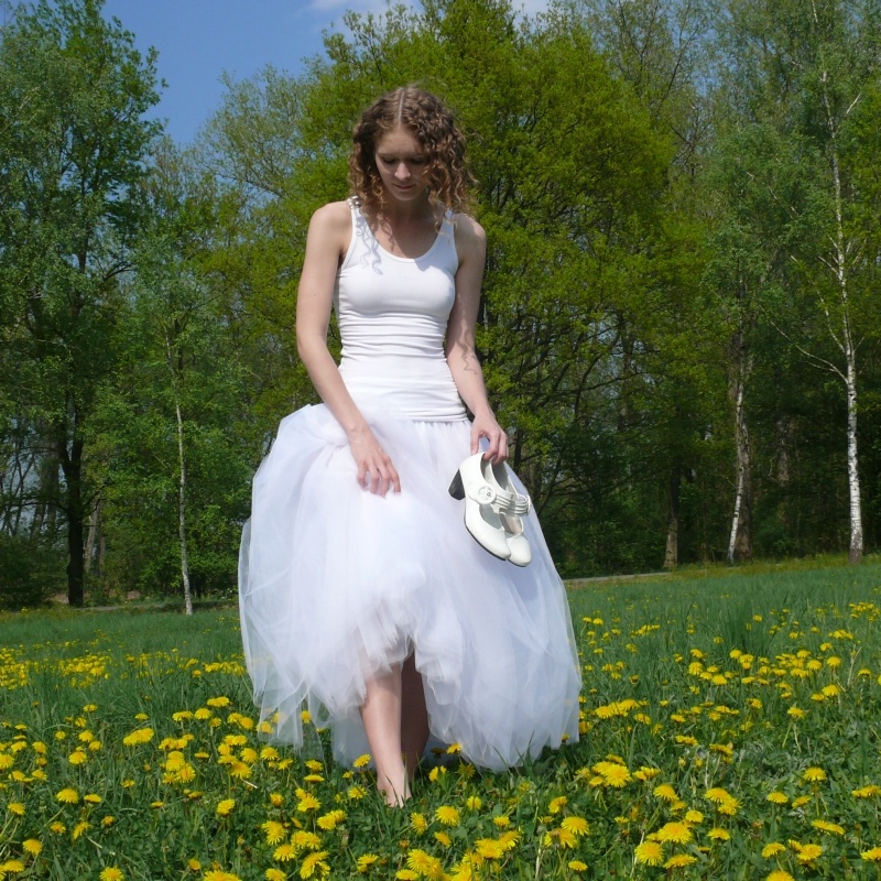 Sukně je ušitá z mnoha vrstev nařaseného bílého tylu, podšitá je bílou látkou, která však pod vrstvou tylu není vůbec patrná, takže sukně vytváří dojem, jakoby byla celá jen z lehounkého tylu. Sukně je pečlivě ušitá, vrstvu po vrstvě. Důraz kladu na zapošití každé nitky a kvalitně provedenou práci. V žádném případě se nejedná jen o navázané kusy tylu na gumu!