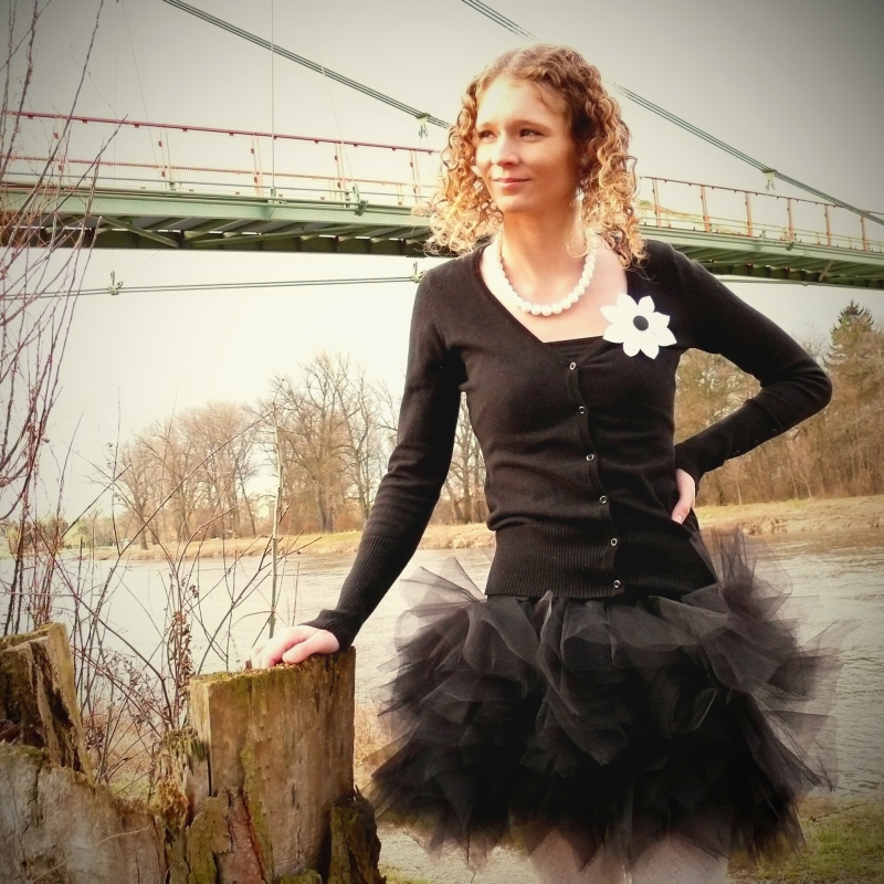 Sukně je ušitá z nařaseného černého tylu. Jednotlivé cípy jsou našité na černou podšívku, která zajistí, že sukně není průhledná avšak pod vrstvou tylu není podšívka vůbec patrná, takže sukně vytváří dojem, jakoby byla celá jen z lehounkého tylu. Tyl i podšívka jsou všité do pasového límce, který má v sobě gumu, takže se přizpůsobí vašim křivkám. Sukni lze nosit posazenou na bocích nebo ji vytáhnout až do pasu.