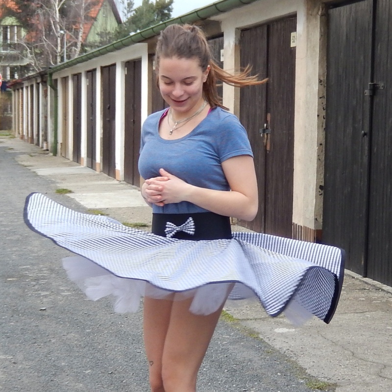 Sukně je vhodná a velmi příjemná na běžné nošení, ale i na retro akce, plesy ve stylu 60. let, na swing (krásně se točí), fotografování, předtančení či jakokouliv příležitost, kde byste chtěla být nepřehlédnutelná!