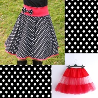 Černo-červená puntíkovaná sukně + jednoduchá červená spodnička