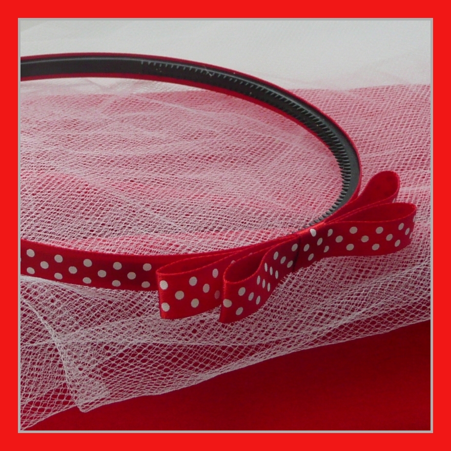 Červená drobně puntíkovaná čelenka s mašlíDo týdne230 Kč/ ks