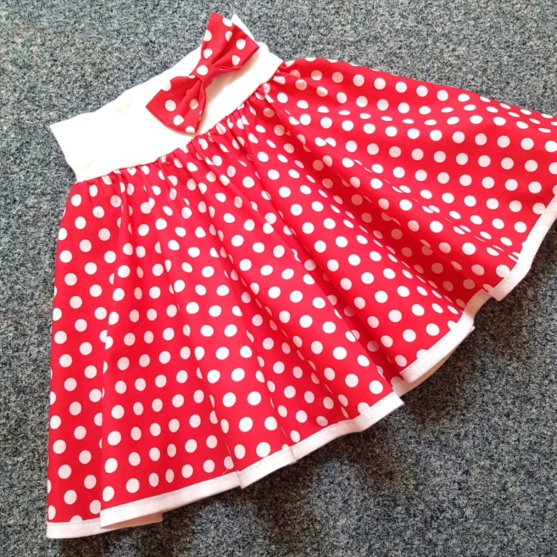 Sukně v retro stylu je ušitá z puntíkované bavlněné látky - červený podklad a bílé puntíky o velikosti 1 cm. Je kolová a má bílý pružný pasový límec, který se dobře přizpůsobí a je velmi pohodlný. Spodní okraj je bíle olemovaný. K sukni navíc dostanete mašličku jako sponku do vlasů. Sukně má následující míry: Délka bavlněné části: cca 25 cm Šířka pasového límce: cca 5 cm Velikost mašle (brože): cca 8 cm Minimální obvod v místě pasového límce: 45 cm (jinak by sukně padala, větší obvod nevadí, pasový límec je hodně pružný) Maximální obvod přes boky: 63 cm (v případě většího obvodu by nebylo možné sukni obléknout) Odpovídá přibližně velikosti 92-110. K sukni je možné objednat také tylovou spodničku! |