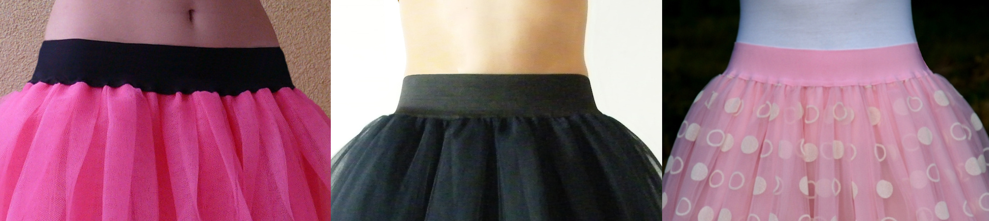 Aby nebyla sukně průsvitná, dávám sukním vždy podšívku. Používám buď klasickou podšívkovinu (acetát nebo polyester), případně i satén či bavlnu. Barva podšívky odpovídá barvě tylu.