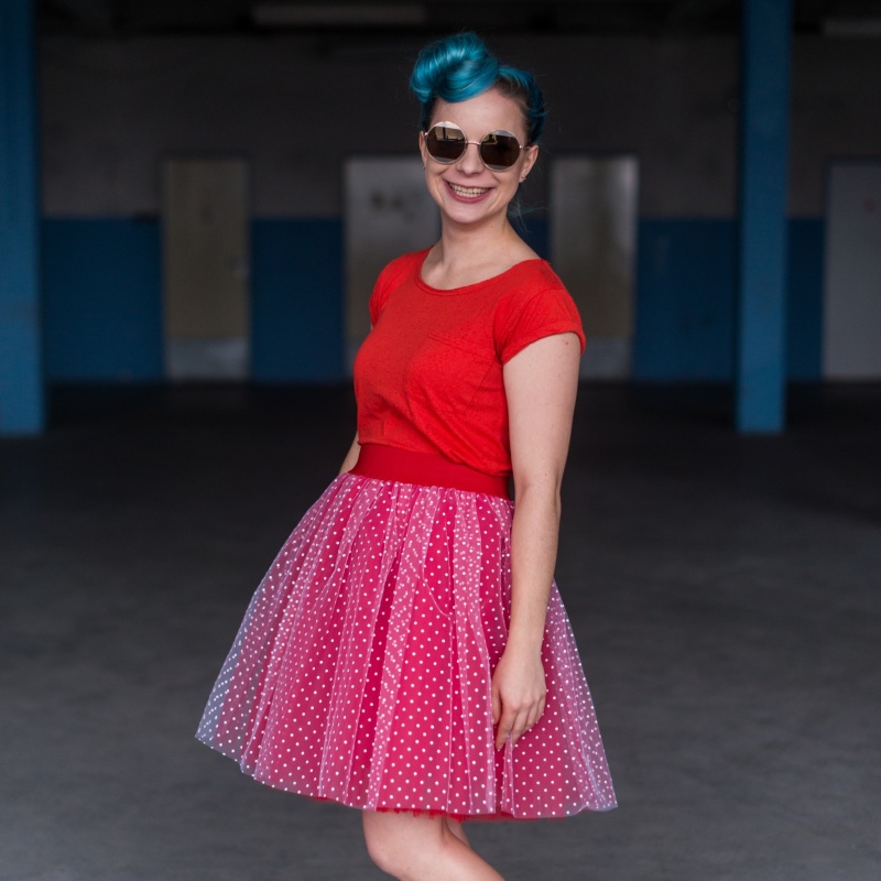 Červená puntíkovaná tylová sukně