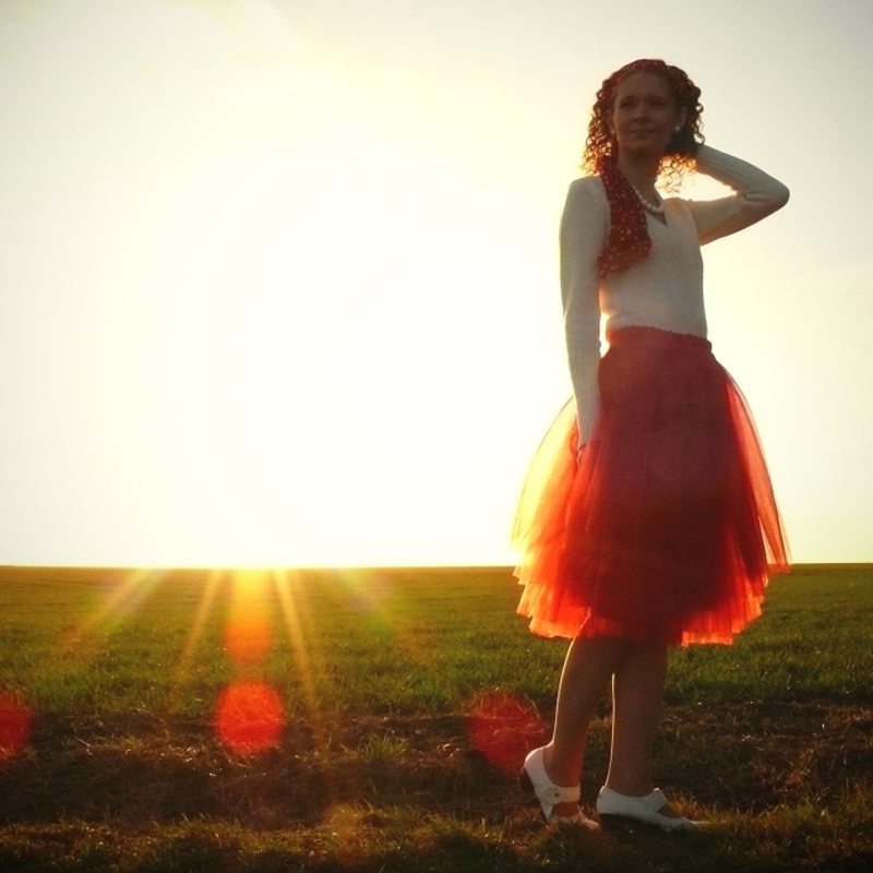 Sukně je ušitá z několika vrstev nařaseného červeného tylu, podšitá je červenou látkou, která však pod vrstvou tylu není patrná, takže sukně vytváří dojem, jakoby byla celá jen z lehounkého tylu. Sukně je pečlivě ušitá, vrstvu po vrstvě. Důraz kladu na zapošití každé nitky a kvalitně provedenou práci. V žádném případě se nejedná jen o navázané kusy tylu na gumu!