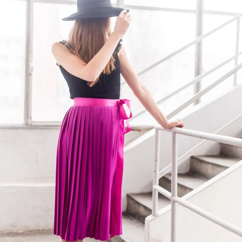 Fuchsiová zavinovací plisovaná sukně