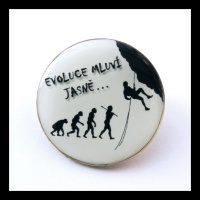 Motiv evolučního vývoje horolezce je zalitý dostatečnou vrstvou kvalitní křišťálové pryskyřice, která vytváří pravidelný kopeček. Je průzračná, lesklá a samozřejmě bez bublinek a nečistot.