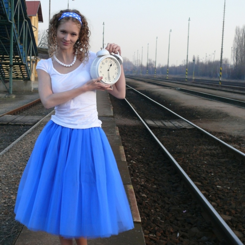 Modrá tylová sukně