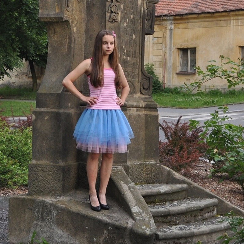 Modro-růžová tylová sukně