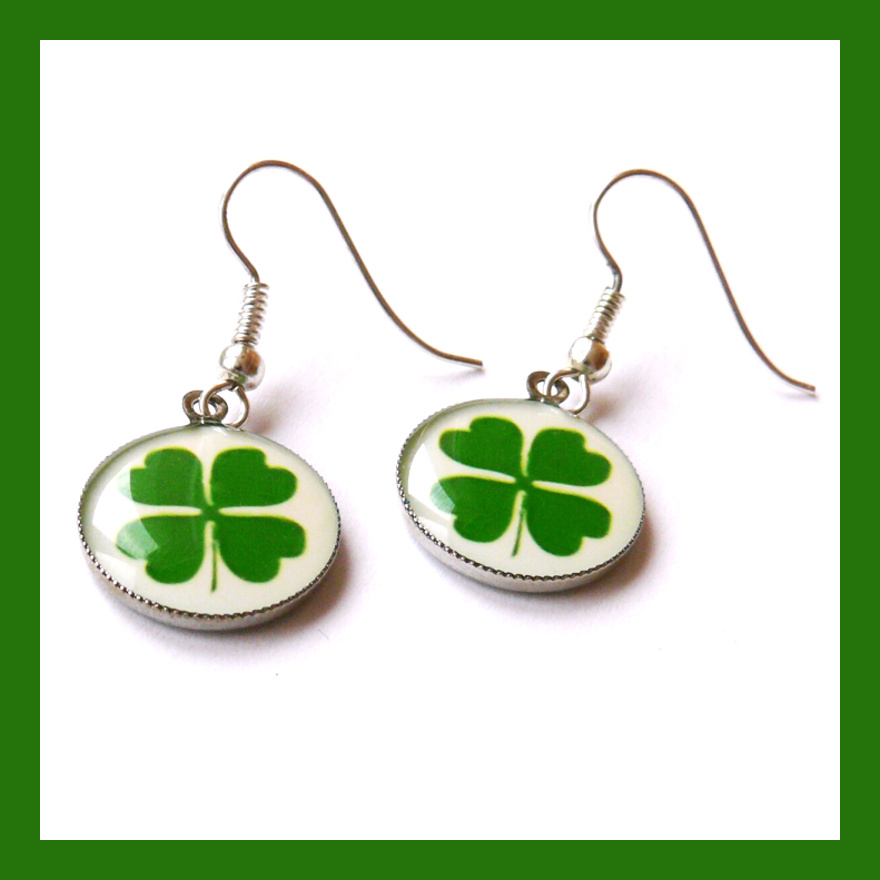 Náušnice mají průměr lůžka 1,5 cm. Motiv čtyřlístku je zalitý dostatečnou vrstvou kvalitní křišťálové pryskyřice, která vytváří pravidelný kopeček. Je průzračná, lesklá a samozřejmě bez bublinek a nečistot.