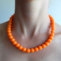 Oranžové korále o průměu 1,1 cm jsou navlečené na gumičce. Náhrdelník má v klidu délku 50 cm a díky své pružnosti se dá snadno navléci na krk.