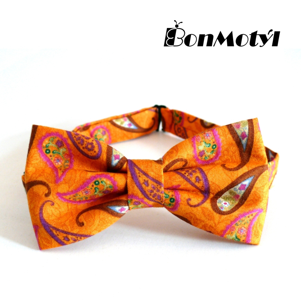 Pánský motýlek je ušitý z bavlněné látky - oranžové se vzorem.