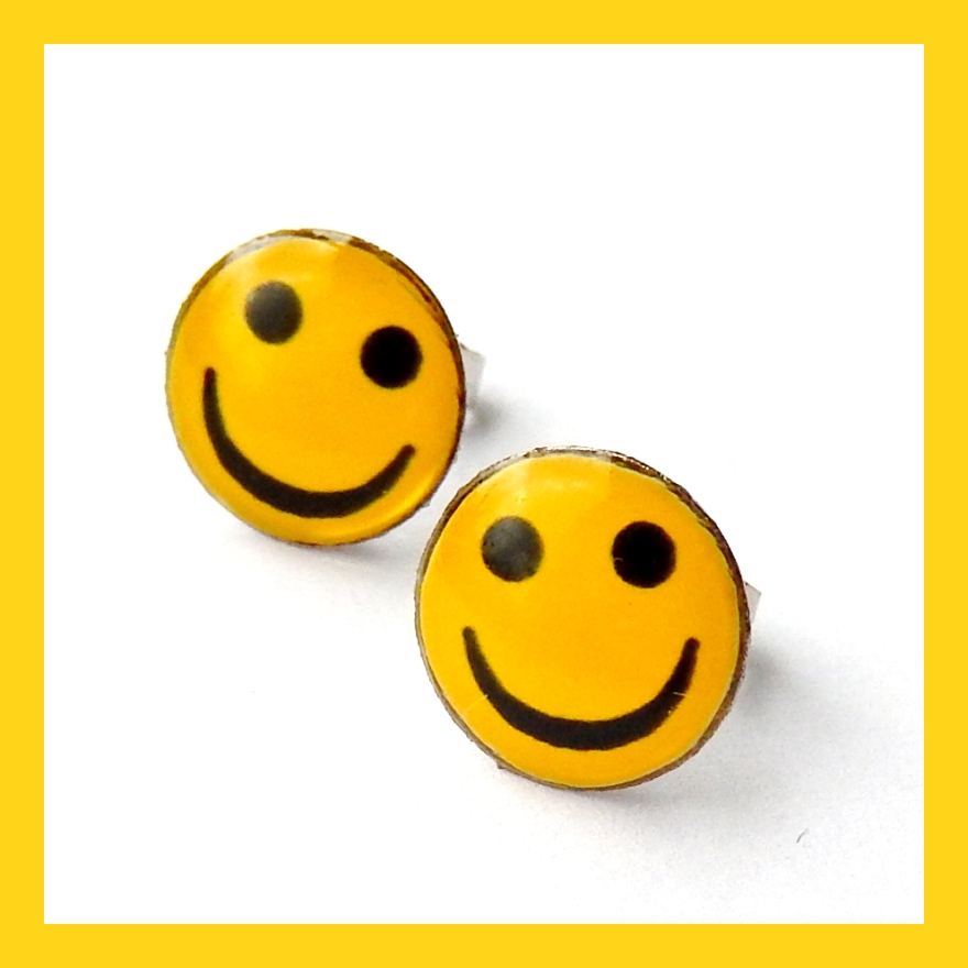 Drobné náušničky mají průměr 1 cm. Motiv žlutého smajlíka je zalitý dostatečnou vrstvou kvalitní křišťálové pryskyřice, která vytváří pravidelný kopeček. Je průzračná, lesklá a samozřejmě bez bublinek a nečistot.