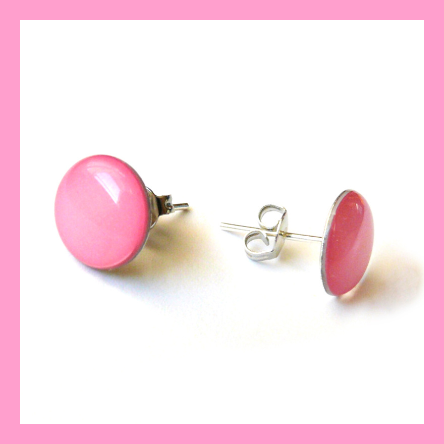 Drobné náušničky mají průměr 1 cm. Světle růžový podklad je zalitý dostatečnou vrstvou kvalitní křišťálové pryskyřice, která vytváří pravidelný kopeček. Je průzračná, lesklá a samozřejmě bez bublinek a nečistot.