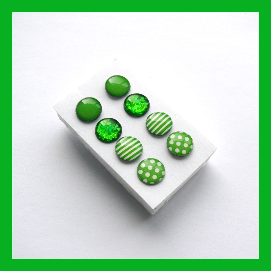 Sada peckových náušnic - zelená