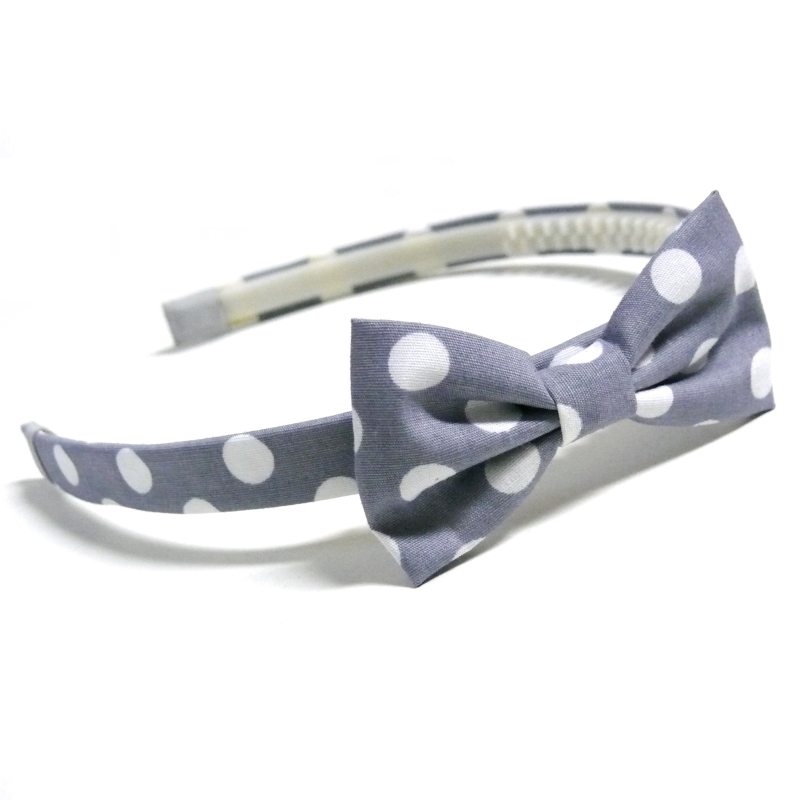 Šedá puntíkovaná čelenka s mašlí - bavlna