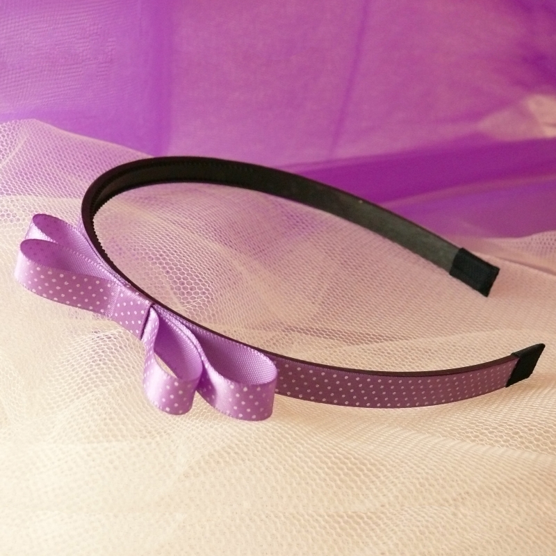 Světle fialová drobně puntíkovaná čelenka s mašlí