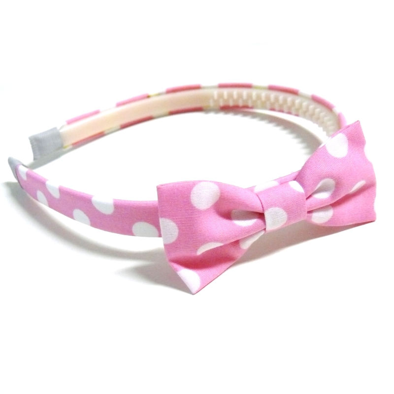 Světle růžová čelenka s bílými puntíky má mašli velkou cca 8 cm. Šířka čelenky je 1,2 cm.