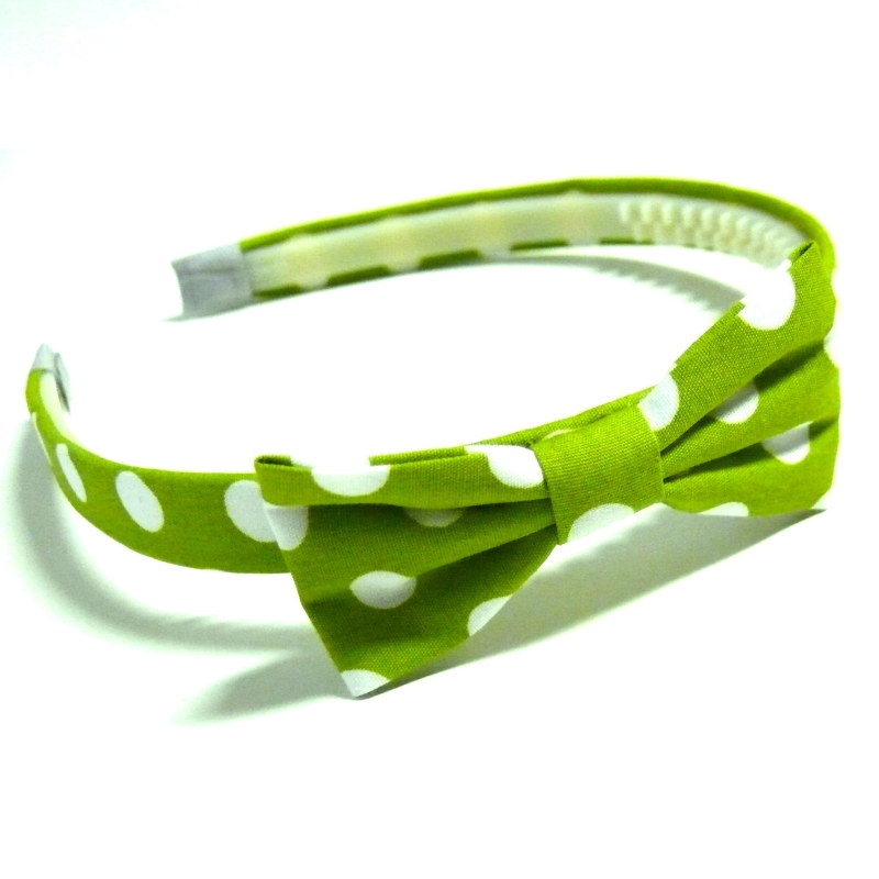 Světle zelená puntíkovaná čelenka s mašlí - bavlna