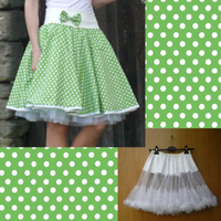 Světle zelená puntíkovaná sukně + objemnější bílá spodnička