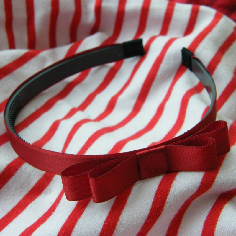 Tmavě červená čelenka do vlasů má mašli velkou cca 7,5 cm. Šířka čelenky je 1 cm.