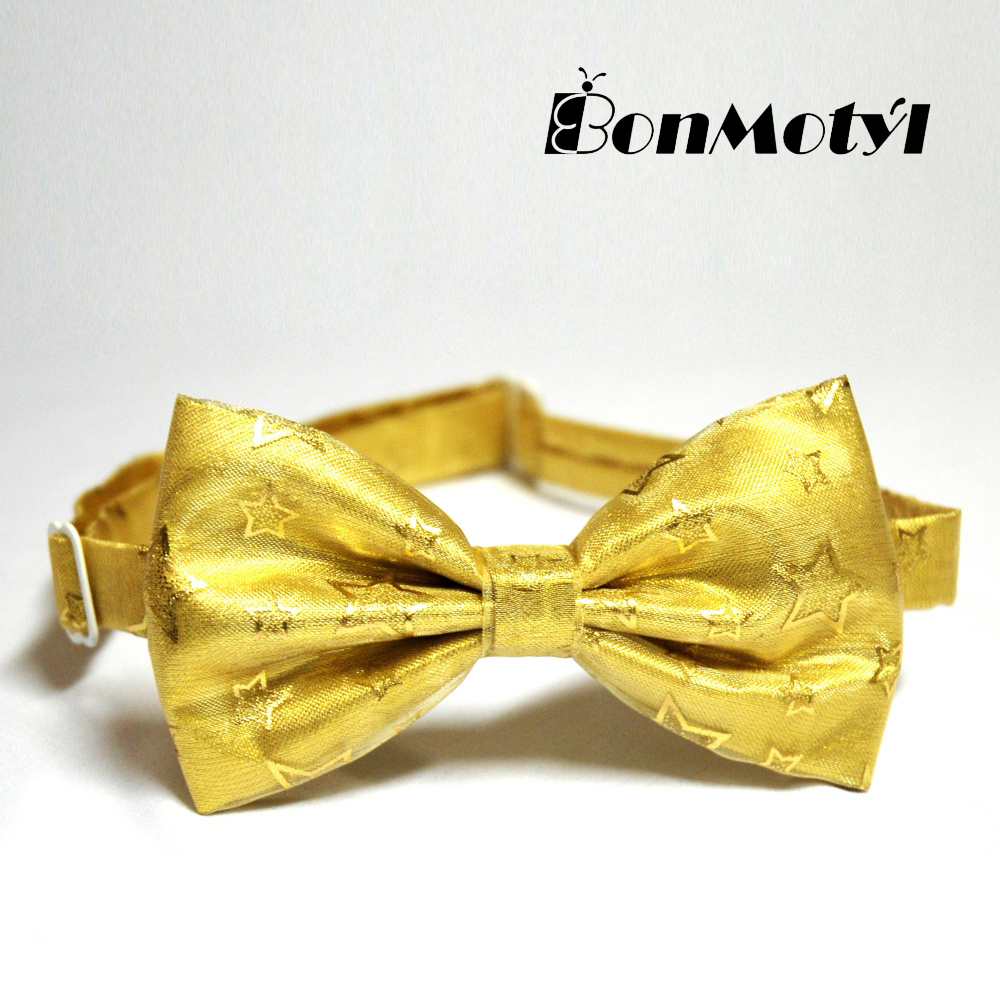 Pánský motýlek je ušitý ze zlaté organzy s hvězdami, podložené zlatou lurexovou látkou.