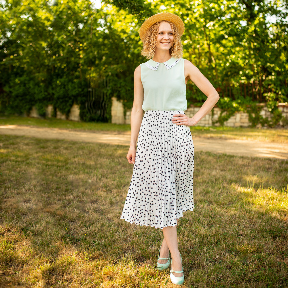 Černobílá puntíkovaná plisovaná sukně